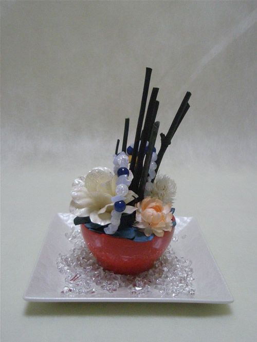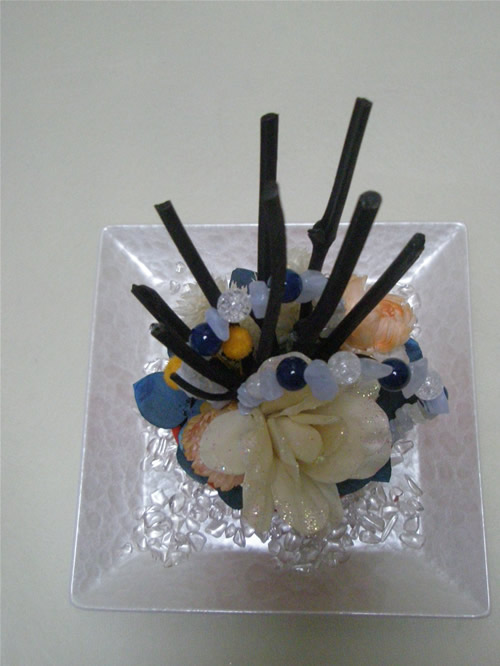 ・ひねりを加え束ねた中心部分を樹脂接着にて固定
